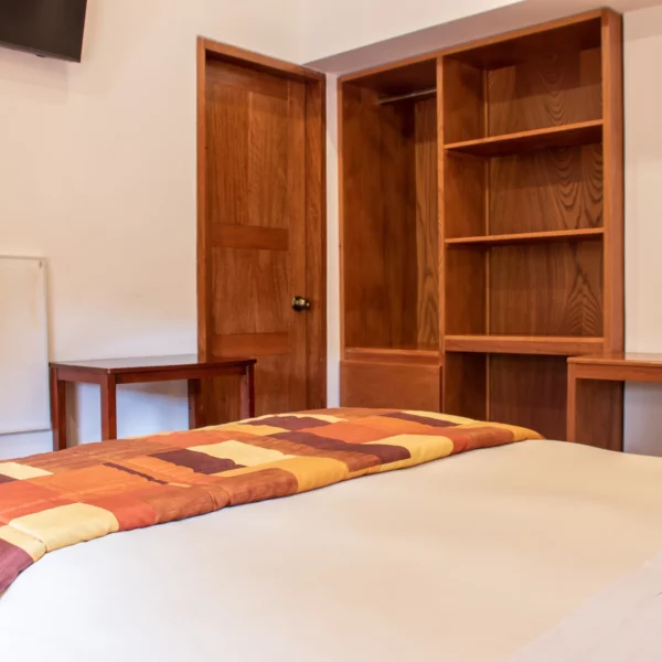 It has a twin or full bed, private bathroom, body towel, hand towel, toilet paper, soap and shampoo. Cable TV in the room. Automatic heating panel at night. The service includes daily cleaning and breakfast in the dining room.